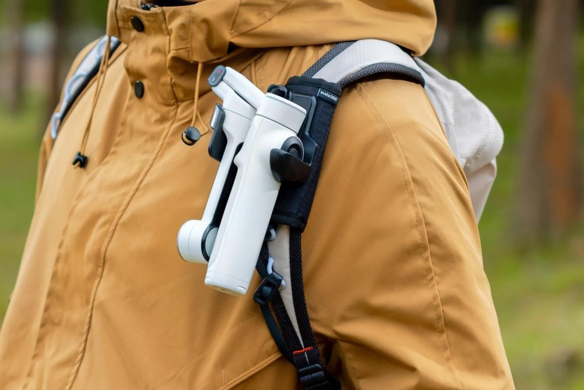 Držák pro připevnění Flow 2 Pro na batoh. Bezpečnostní západka zajišťuje pevné uchycení. Kompatibilní s různými šířkami popruhů, s protiskluzovým silikonovým polstrováním pro stabilitu..