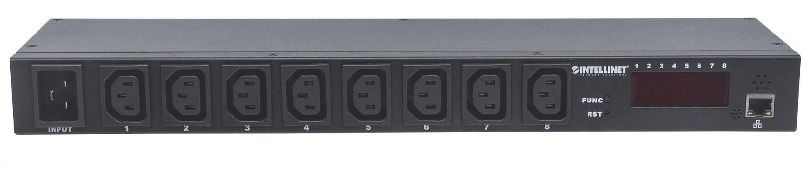 Intellinet rozvodný panel PDU, 8x C13 zásuvka, rack 1U, odpojitelný kabel 16A, monitoring