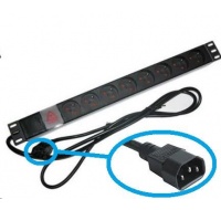 19" rozvodný panel ACAR 8x230V s IEC konektorem pro UPS, vypínač, indikátor napětí, přepěťová ochrana, kabel 1,5mTyp příslušenství:Napájení 230V.