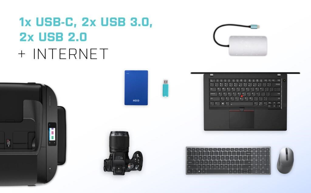 • 2x USB 3.0, 2x USB 2.0 a 1x USB-C port vám umožní snadné připojení vašich USB zařízení a periferií.