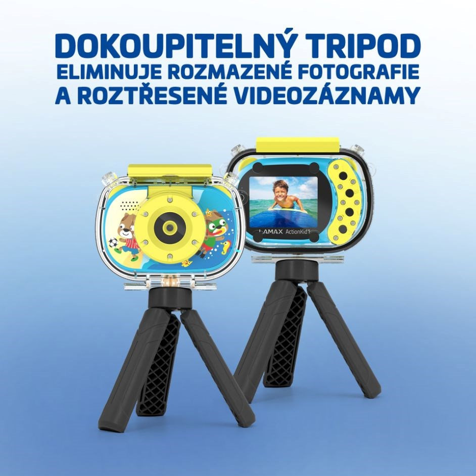 Děti by neměly sedět v koutě. Jejich akčnost podpoří dětská akční kamera LAMAX ActionKid1, na kterou zaznamenají všechna svoje dobrodružství v parádní kvalitě. Pořízená videa mají rozlišení 1080p a jelikož jde kameru použít i k focení, získá malý tvůrce 8 Mpx fotky. Zážitky z prázdnin, sportovních a jiných aktivit můžou ozvláštnit pomocí zabudovaných efektů a filtrů. Hlavně starší děti ocení i možnost pořídit díky vodotěsnému pouzdru podvodní záběry v hloubce 10 m. Kamera disponuje výklopnou čočkou, kterou lze manuálně přepnout na selfie kameru. Pro ukrácení dlouhé chvíle dětem poslouží čtyři uložené hry. Veselý design kamery si každý malý tvůrce může ještě ozvláštnit podle svého vkusu přiloženými samolepkami se zvířátky. Kamera se dá pomocí závitu bez problémů připevnit k různým držákům.
