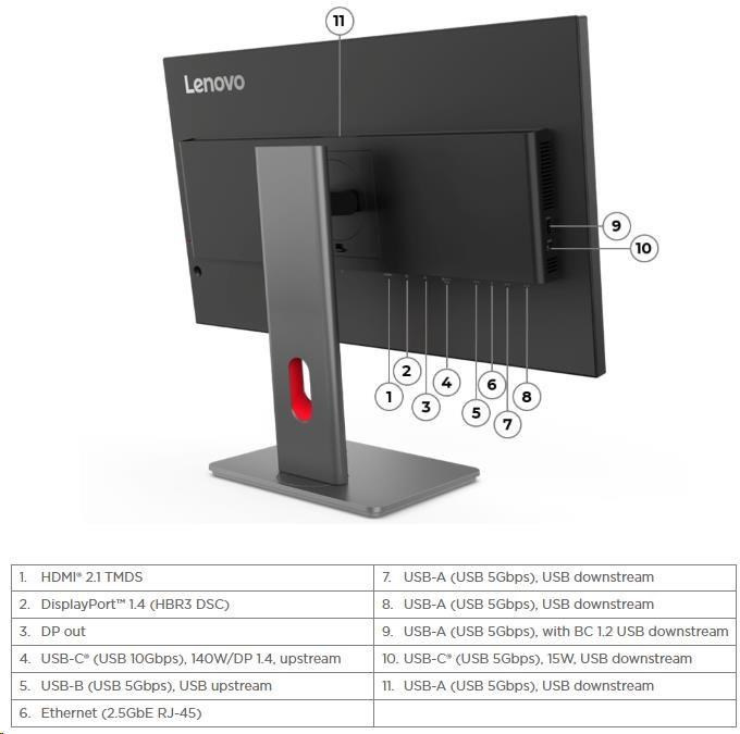 | Speciální funkce | Factory Calibration: Avg. Delta EPicture In Picture (PIP) / Picture By Picture (PBP) Support Lenovo ThinkColour (Lenovo Accessories and Display Manager) Support Lenovo ThinkColour supports Windows 10 & 11, Mac OS (functions vary across systems). Lenovo Accessories and Display Manager is formerly Lenovo Display Control Center. KVM Switch (with eKVM) LDFM (Lenovo Display Fleet Manager) Mirrored Power Button Multi-sync Natural Low Blue Light Smart Power The Smart Power function intelligently detects overall power consumption and dynamically manages the power delivery to each device |