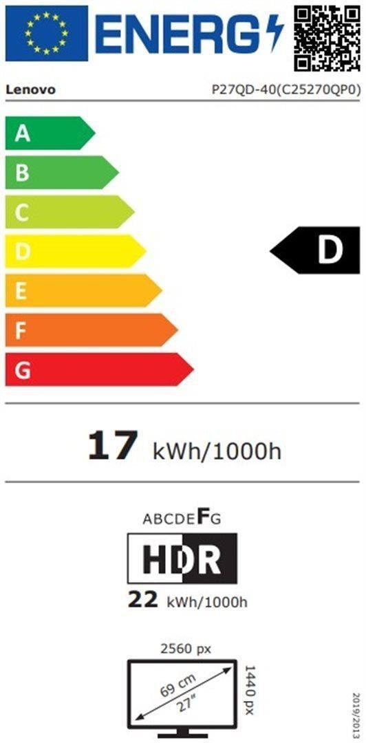 LENOVO LCD P27QD-40+MC60 - 27",ECO-IPS,16:9,2560x1440,120Hz,350cd/m2,1500:1,4ms,HDMI,DP,DPout,DC,USBHub,USB-C,RJ45,Pivot