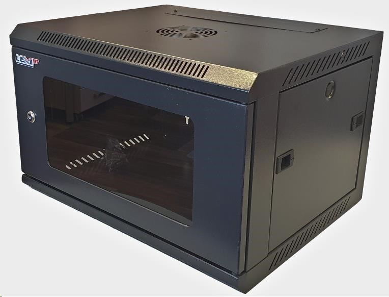 LEXI-Net 19" nástěnný rozvaděč 6U 600x450, nosnost 60 kg, skleněné dveře, rozložený, černý