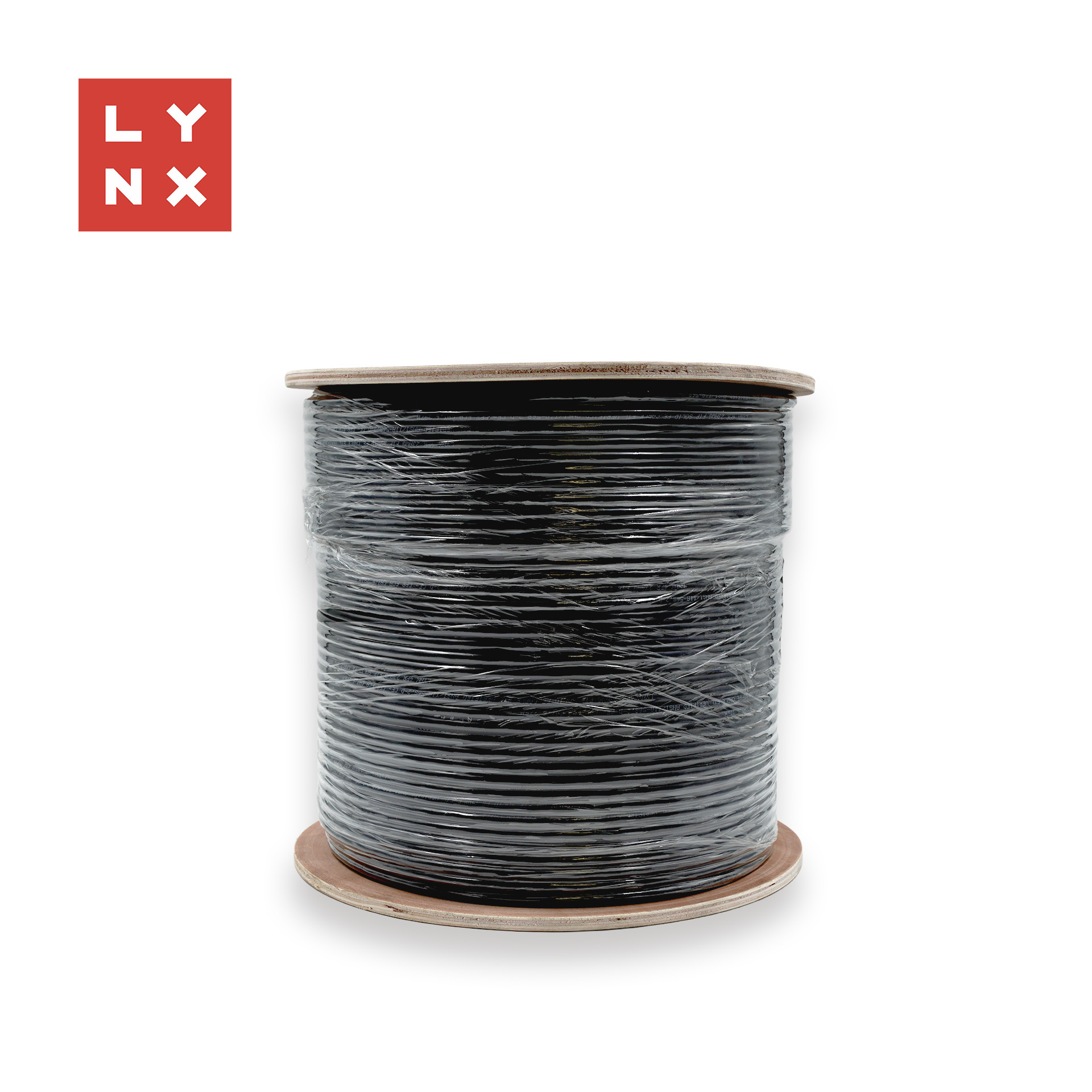 LYNX FTP kabel Cat6, PE (Fca), celoměděný, venkovní, černý, cívka 305m