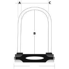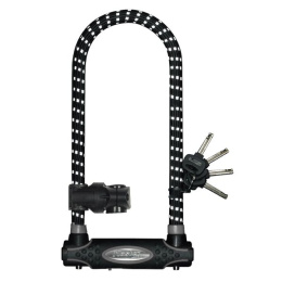 Tělo zámku je vyrobené z tvrzené oceli odolné proti povětrnostním vlivům. Jeho třmen s reflexními prvky je z kalené oceli o průměru 13 mm. Zámek obsahuje diskovou cylindrickou vložku odolnou proti vyhmatání a dvojitou západku odolnou proti vypáčení. Součástí balení je držák pro praktické skladování a 4 ks klíčů. Rozměry (A x B x C mm): 13 x 280 x 110 mm..