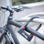 Tělo zámku a třmen o průměru14 mm je vyroben z tvrzené oceli odolné proti povětrnostním vlivům. Krytka klíčové dírky zabraňuje vniknutí nečistot. Má kompaktní rozměry pro snadné přenášení. Součástí balení jsou 4 ks klíčů. Rozměry (A x B x C mm): 14 x 150 x 80 mm..
