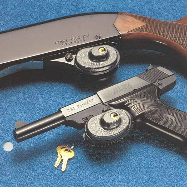 Klíčem uzamykatelný zámek spouště zbraně 90DSPT. Jeho odolné tělo zámku je vyrobené ze slitiny zinku a oceli. Gumové podložky chrání zbraň před poškrábáním. Obsahuje vložku zámku se 4 stavítky. Vhodné pro všechny standardní typy zbraní..