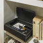 Uzamykatelný přenosný trezor MLD08EB se vyznačuje masivní ocelovou konstrukcí. Obsahuje nastavitelný digitální kombinační zámek a plynové vzpěry pro tiché otvírání dveří. Jeho konstrukce je odolná proti vypáčení dveří. Objem činí 2,34l. Napájení 4x AA baterie (není součást balení), 2ks klíčů jsou součástí balení..