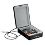 Uzamykatelný cestovní box na cennosti P005CEURBLKHRO je vhodný pro uschování klíčů, hotovosti, dokladů, šperků nebo drobné elektroniky. Box má pevnou ocelovou konstrukci. Je zde nastavitelný 3-ciferný kombinační zámek (1000 možností). Dále je součástí integrované ocelové lanko o průměru 4 mm a délce 900 mm pro uchycení k pevnému bodu. Dno boxu pokrývá měkká pěna..