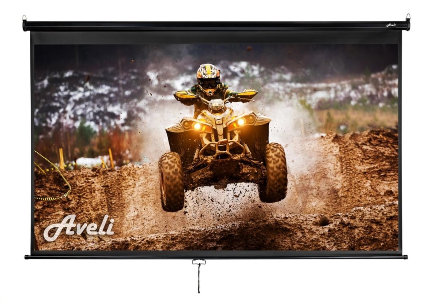 Nástěnné projekční plátno AVELI, 265x149cm (16:9) 120", černý tubus