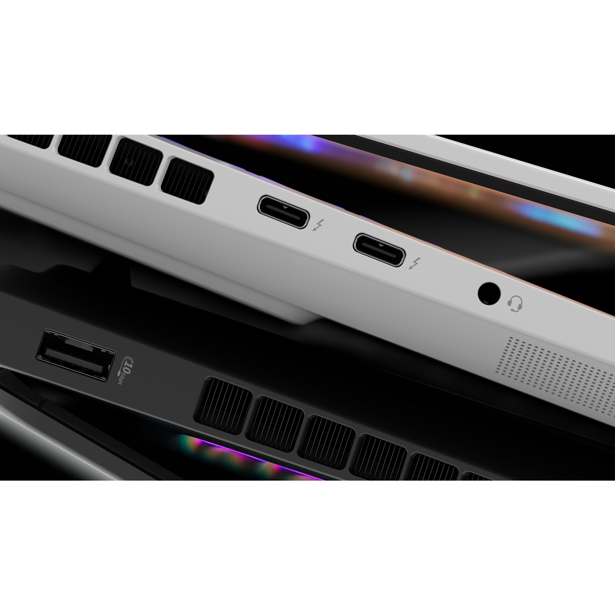 | Porty | 2× USB Type-A s přenosovou rychlostí 10 Gbit/s; 1× AC Smart Pin; 1× HDMI 2.1; 1× konektor sluchátek/mikrofonu; 1× port RJ-45; 2× USB Type-C® s přenosovou rychlostí signálu 40 Gb/s (USB Power Delivery 3.1, DisplayPort™ 2.1, HP Sleep and Charge) |