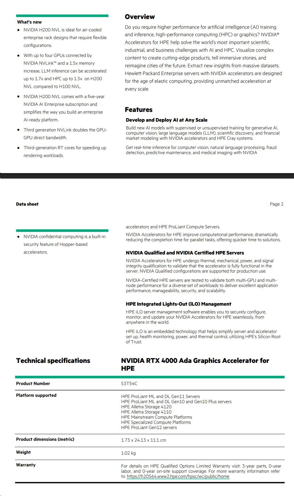 NVIDIA RTX 4000 Ada Graphics Accelerator for HPE