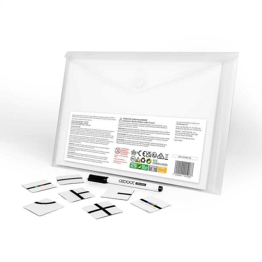 Základní magnetická sada Ozobot je kombinací barevných kódů Ozobot a dílků pro následování trasy pomocí černé linie. Umožňuje žákům rozvíjet zkušenosti v širokém spektru dovedností. Magnety s barevnými kódy a liniemi mají vhodnou velikost a snadno se používají. Manipuluje se s nimi jednoduše díky praktickým rozměrům a jsou ideální pro mladé žáky, kteří právě začínají objevovat svět interaktivního kódování.Kvalita a dlouhá životnost