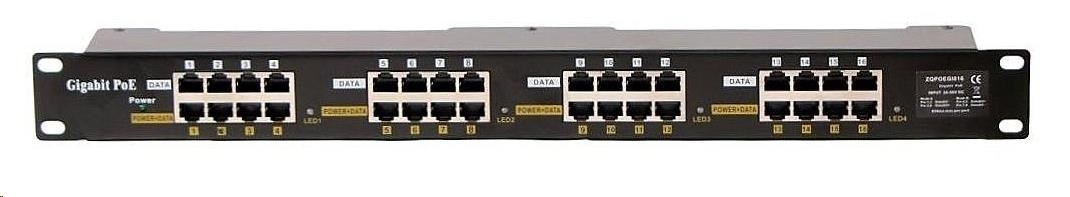 POE injektor aktivní/pasivní - 16x 1 Gb/s, stíněný panel, 802.3af/at