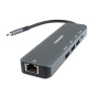 PREMIUMCORD Adaptér USB-C na Gigabit 10/100/1000Mbps + 1x HDMI, 2x USB3.2, 1x PD 100W konektor, Šedá