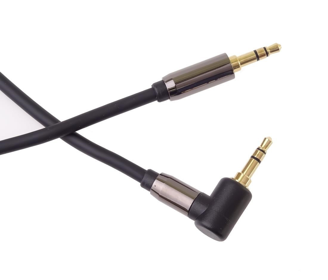PremiumCord HQ stíněný kabel stereo Jack 3.5mm - Jack 3.5mm zahnutý 90°, 1,5m