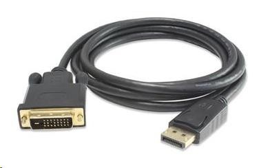 PremiumCord DisplayPort na DVI kabel 2m M/M Kabel pro propojení zdroje signálu DisplayPort (Notebook, PC) na zobrazovací jednotku s DVI vstupem (monitor, TV). DisplayPort musí být zdroj signálu! - 2m délka - kompatibilní s Displayport 1.1, až 1.62Gbps a 2.7Gbps přenosová rychlost dat - podpora plného Displayport propojení. - kompatibilní s DVI1.1, datová propusnost až 1.65Gbps. PC rozlišení: VGA,SVGA,XGA,SXGA a UXGA. HDTV rozlišení: 480i,576i,480p,576p,1080i,1080p..