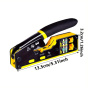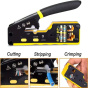 PremiumCord krimpovací kleště na průchozí RJ konektory jsou spolehlivým univerzálním nástrojem pro práci s většinou běžných modulárních zástrček řady RJ — včetně RJ11, RJ12, RJ14, RJ45 a dalších typů. Díky konstrukci 3 v 1 umožňují snadné krimpování, stříhání i odizolování kabelů, což výrazně urychluje a zpřesňuje práci při výrobě či opravách síťových a telefonních vedení.