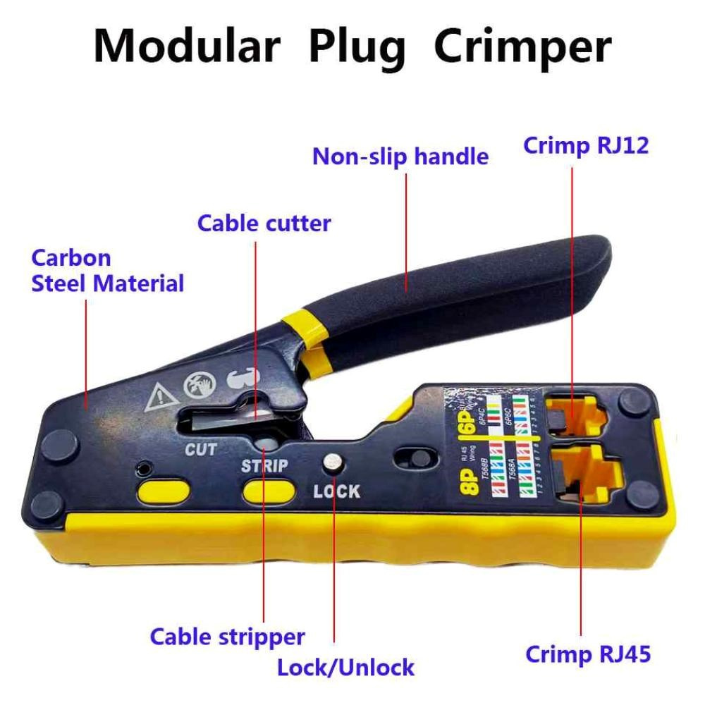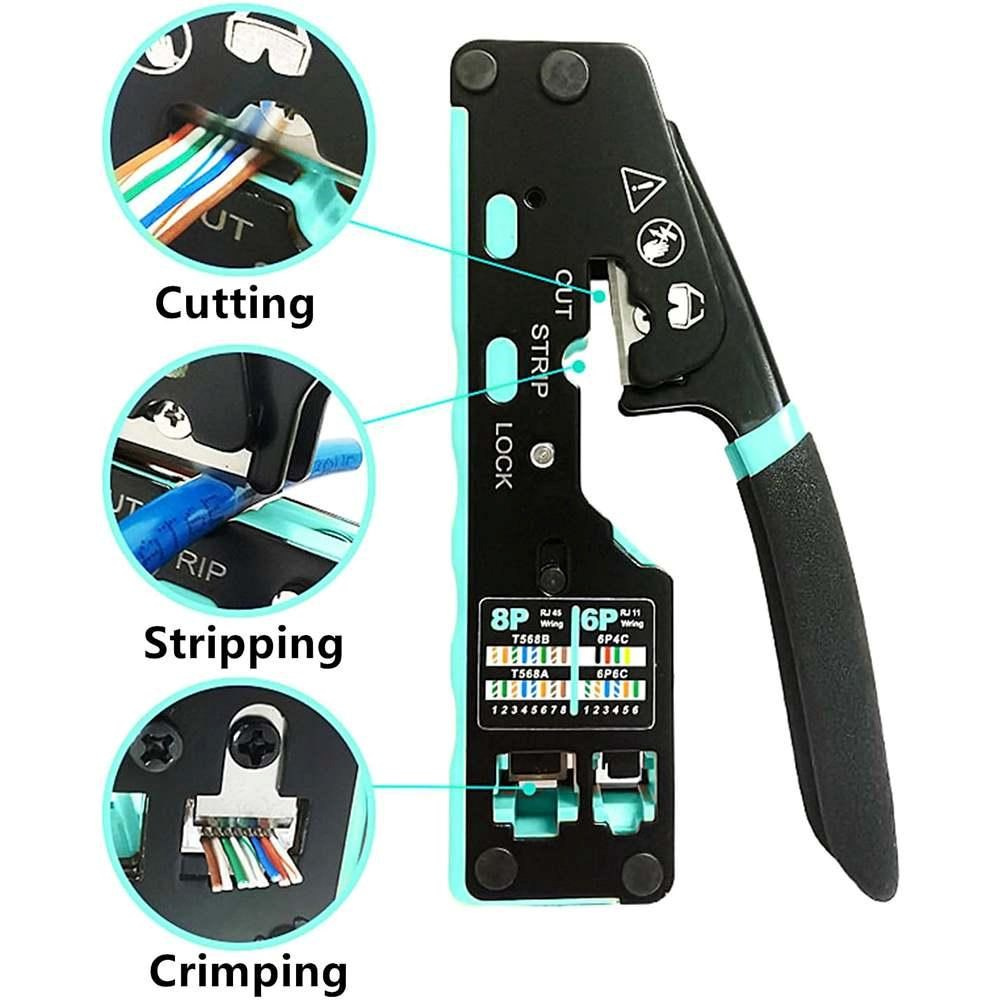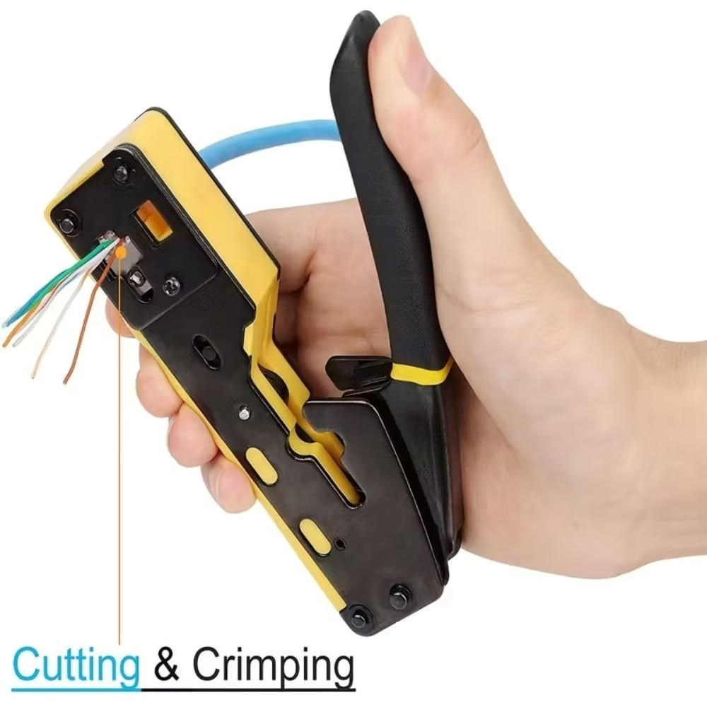 PremiumCord krimpovací kleště na průchozí RJ konektory jsou spolehlivým univerzálním nástrojem pro práci s většinou běžných modulárních zástrček řady RJ — včetně RJ11, RJ12, RJ14, RJ45 a dalších typů. Díky konstrukci 3 v 1 umožňují snadné krimpování, stříhání i odizolování kabelů, což výrazně urychluje a zpřesňuje práci při výrobě či opravách síťových a telefonních vedení.