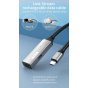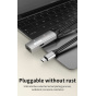 - Napájení s USB sběrnice. Kabel má přídavný USB-C napájecí konektor pro případ, že vzdálené připojené zařízení potřebuje větší příkon, v tom případě lze do prodlužovacího kabelu připojit z boku USB-C přídavný napájecí adaptér.