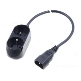 Prodlužovací přívod 2x230V CEE7/5 pro připojení do UPS s konektory IEC 320-C14. Počet výstupních zásuvek: 2 Délka kabelu: 30cm Maximální napětí: 250V Maximální proud: 10A.Typ příslušenství: