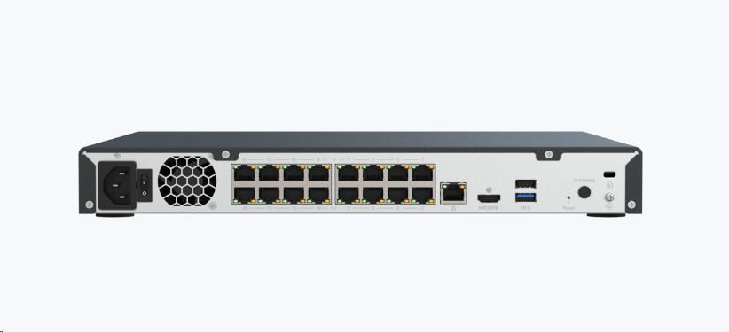 - Snadná instalace, rychlé nasazení: Jeho 16 portů PoE+ přímo napájí IP kamery a přenáší napájení i data prostřednictvím jediného ethernetového kabelu, čímž odpadá nutnost složité kabeláže.