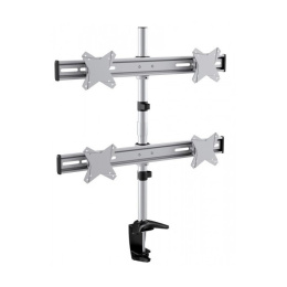 Stolní hliníkový držák s upevňovací klemou pro 1x LCD monitor a menší TV s uhlopříčkou 10"- 27" a hmotností maximálně 5kg. 51cm rameno - 3x pant, vertikální výtah +15-85° GasSpring, horizontálně otočný 360°, reproduktor a USB slot, moderní design. barva černá. Uchycení VESA: 75x75, 100x100..