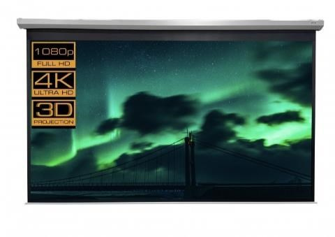 RC motorové plátno MOTOR CrystalLine 400x333cm, viditelná plocha 4:3, 192"/488cm, 390x293cm, bílý hranatý kovový tubus 15x415cm/46kg, uchycení na stěnu nebo strop, materiál BetaLux - bílá 0,52 tkanina 600g/m2 s 5cm černým okrajem a zadní stranou, Gain=1,0, pozorovací úhel 150°. Lux - bílý matný povrch pro maximálně věrný a kontrastní obraz při alespoň částečném zatemnění. PVC materiál s textilním základem vytváří rovnou plochu bez zvlnění ale v krajích může docházet k prohnutí - postupně mizí. Snadné uchycení na bocích plátna - stěna nebo strop. Přívodní elektrický kabel je na levé straně tubusu (při pohledu na upevněné plátno). Součástí dodávky je RC dálkový ovladač. Krabička RC přijímače (lze připevnit na stěnu) je na přívodním síťovém kabelu a na jejím boku jsou další možná tlačítka pro ovládání plátna..