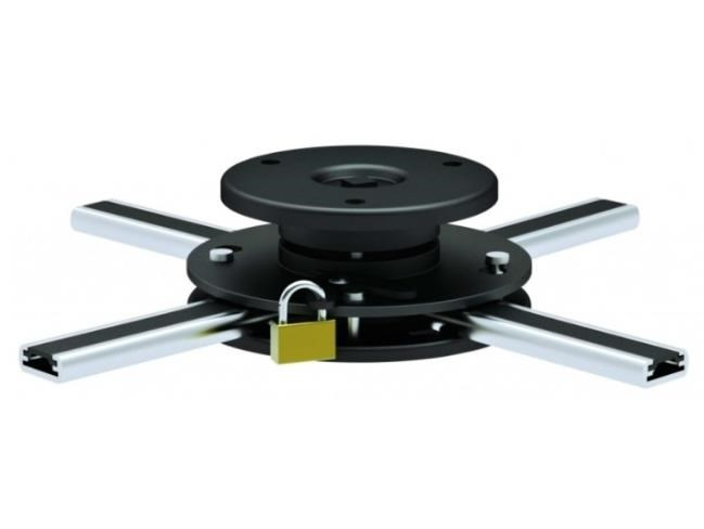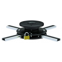 Stropní držák na dataprojektory - vzdálenost od stropu 6,2cm, přístroj lze otočit o 360° a naklonit +/-15°, maximální zatížení 20kg, možnost uzamčení proti odcizení, černý / stříbrný. Univerzální systém uchycení dataprojektorů (rozsah 16-33 cm)..