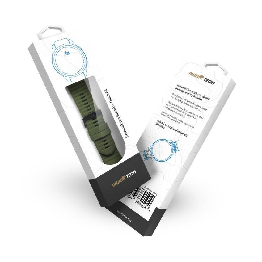 RhinoTech řemínek pro Garmin QuickFit silikonový outdoor 22mm tmavě zelený