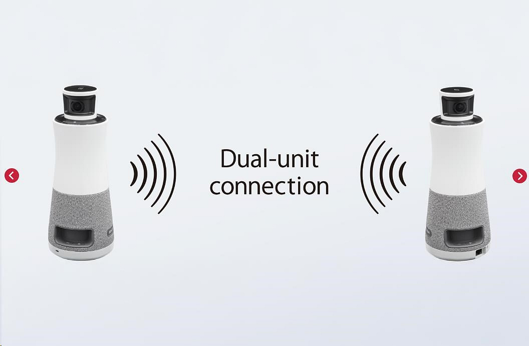 Thanks to its dual fisheye lens, the device can identify up to 8 individual speakers, and highlight the three most recent participants in high-resolution, larger frames. For larger meetings, two units can be connected together. Whilst acoustic echo cancellation and noise reduction ensure all participants can be heard clearly – even in places with background noise.