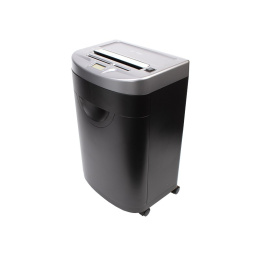 Kvalitní skartovací stroj atraktivního designu, s vysokým stupněm utajení skartovaného materiálu. Vhodný pro kanceláře a úřady. Skartovač je vybaven bezpečnostní funkcí Safe Touch, která zastaví stroj při dotyku vstupní štěrbiny rukou. LCD display ke kontrole zapnutých funkcí. Stroj je standardně vybaven automatickým systémem start/stop, zpětným chodem, tepelnou pojistkou motoru proti přehřátí a signalizací přeplněného koše. Příležitostně lze skartovat sešívací sponky. Samostatný vstup na kreditní karty nebo CD. Tichý chod stroje-55 dB. Lehce vyprázdnitelná odpadní nádoba o objemu 35 l. Stupeň utajení dle vyhlášky č. 528/2005 - T - tajné. Součástí stroje jsou pojezdová kolečka. Inovace od roku 2015 tišší motor a zvýšený výkon na 15 listů. Vstup na papír: 230 mm Šíře řezu:2x10 mm Max. kapacita skartace listů: 12A4/70g m2 Skartace sešívacích sponek: ano Skartace kreditních karet: ano Skartace CD: ano Objem odpadní nádoby: 35 l Automatický start/stop: ano Tepelná pojistka motoru: ano Rozměry: 390 x 305 x 645 mm Hmotnost: 23 kg.