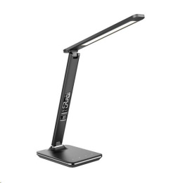 Solight LED stolní lampička s displejem, 9W, volba teploty světla, kůže, černá