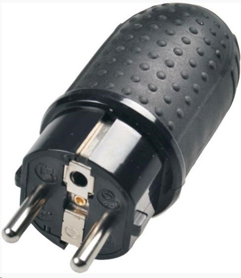 Solight zástrčka gumová do vlhka, přímá, IP44, černá