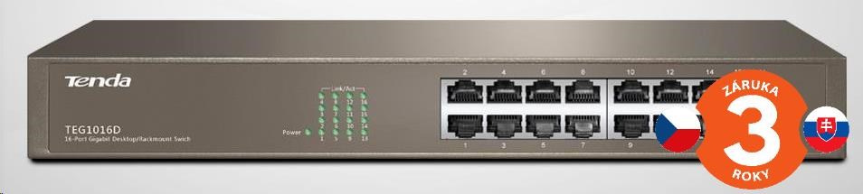 Tenda TEG1016D 16-port Gigabit Ethernet Switch, 10/100/1000 Mbps, fanless, rackmount