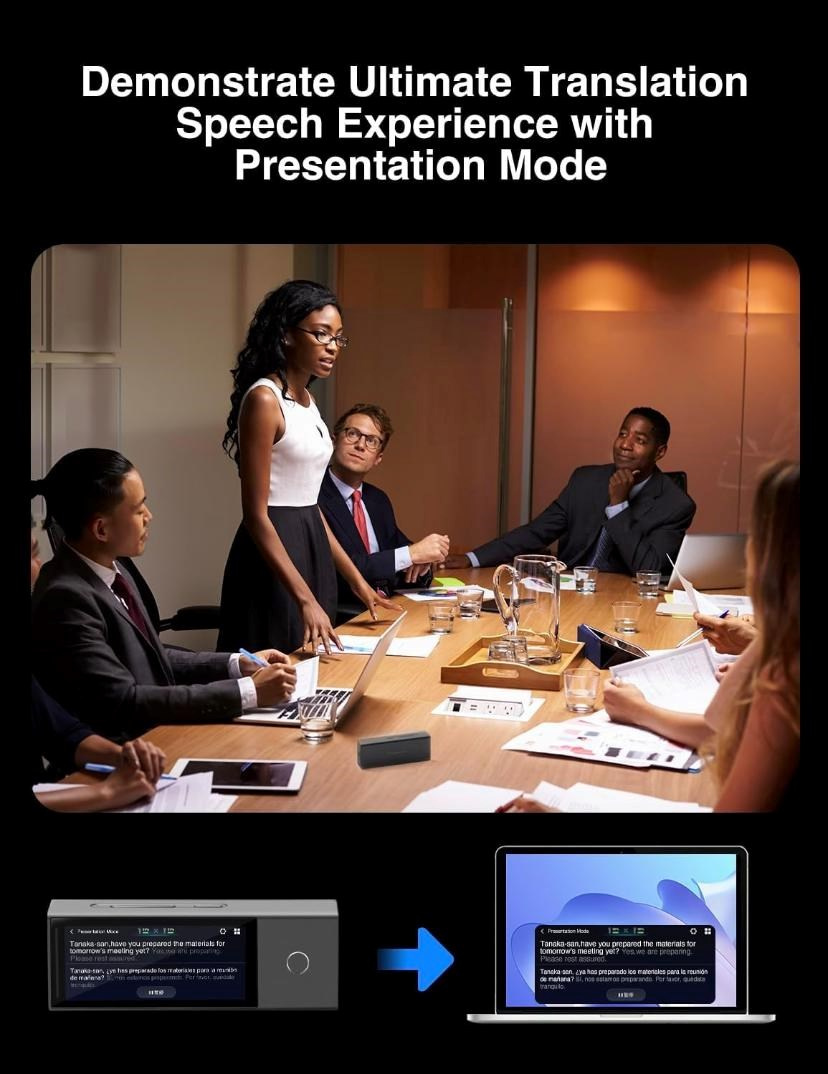Zažijte plynulý překlad při sledování nejnovějších zpráv a videí v cizím jazyce. Překlad a titulky v reálném čase, díky čemuž získáte rychlý přístup k mezinárodním informacím a poznatkům. W4 Pro překládá video i audio z vašeho telefonu, tabletu nebo počítače a zobrazuje okamžité titulky. Je kompatibilní s oblíbenými streamovacími i konferenčními aplikacemi, abyste zůstali vždy v obraze. Integruje se do aplikací jako Teams, Whatsapp, Wechat, Google Meet, Zoom a další. Překlad můžete sledovat na vestavěném displeji, nebo přes picture in picture okno přímo na vašem telefonu, tabletu nebo laptopu. Překlad v tomto režimu nabízí 500 minut měsíčně zdarma. Další minuty lze dokoupit přes účet na webu výrobce.