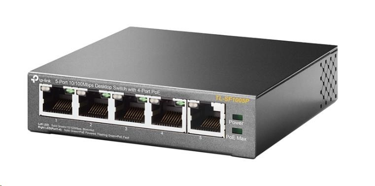 TP-Link switch TL-SF1005P (5x100Mb/s, 4xPoE+, 67W, fanless)