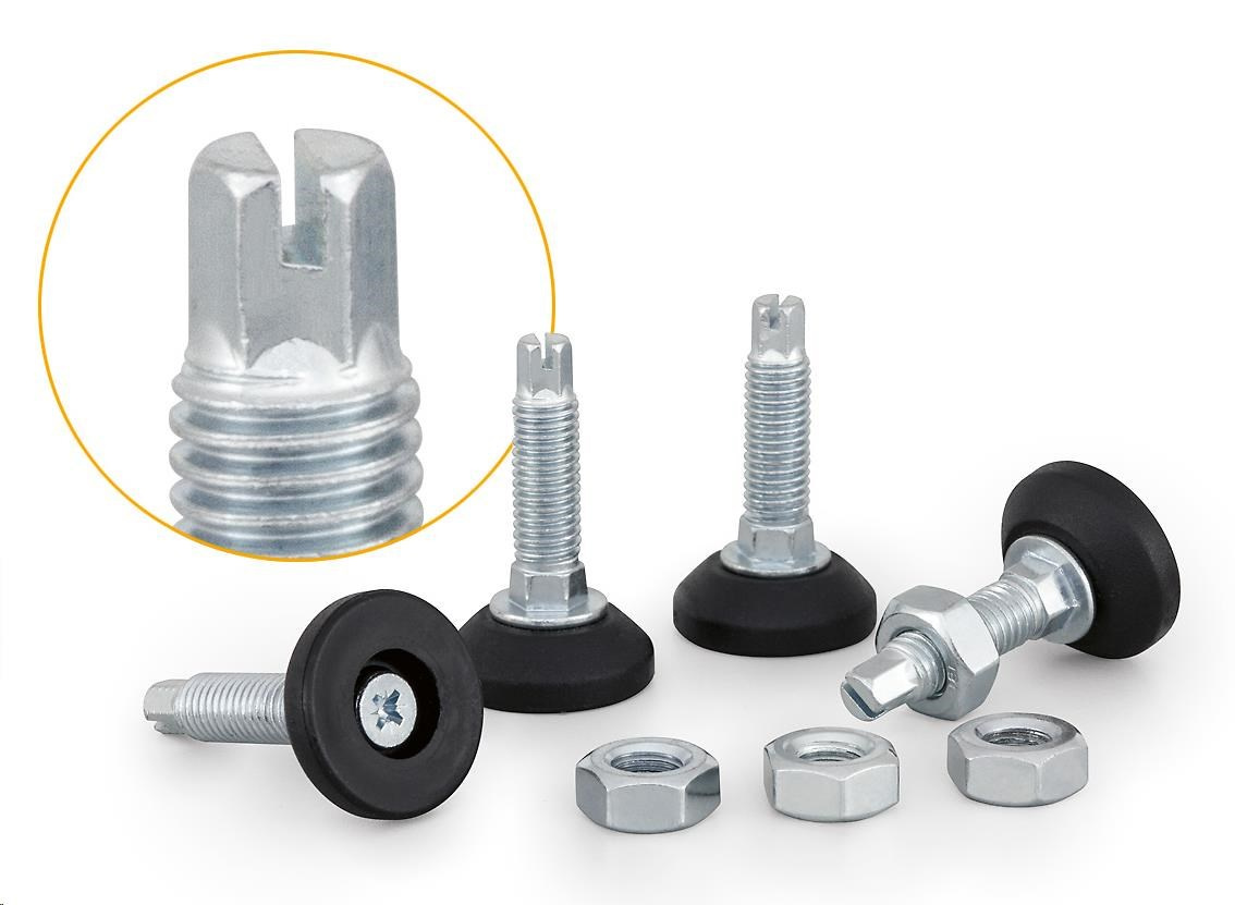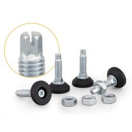 Sada nivelačních nožiček pro stojanové rozvaděče s možností nastavení z vnitřní strany rozvaděče. Po rektifikaci je nutné zajistit polohu maticí..
