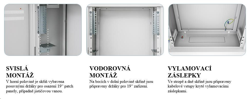 TRITON SHA rozvaděč hybridní na zeď, 4U svisle, 2U vodorovně, nosnost 30kg