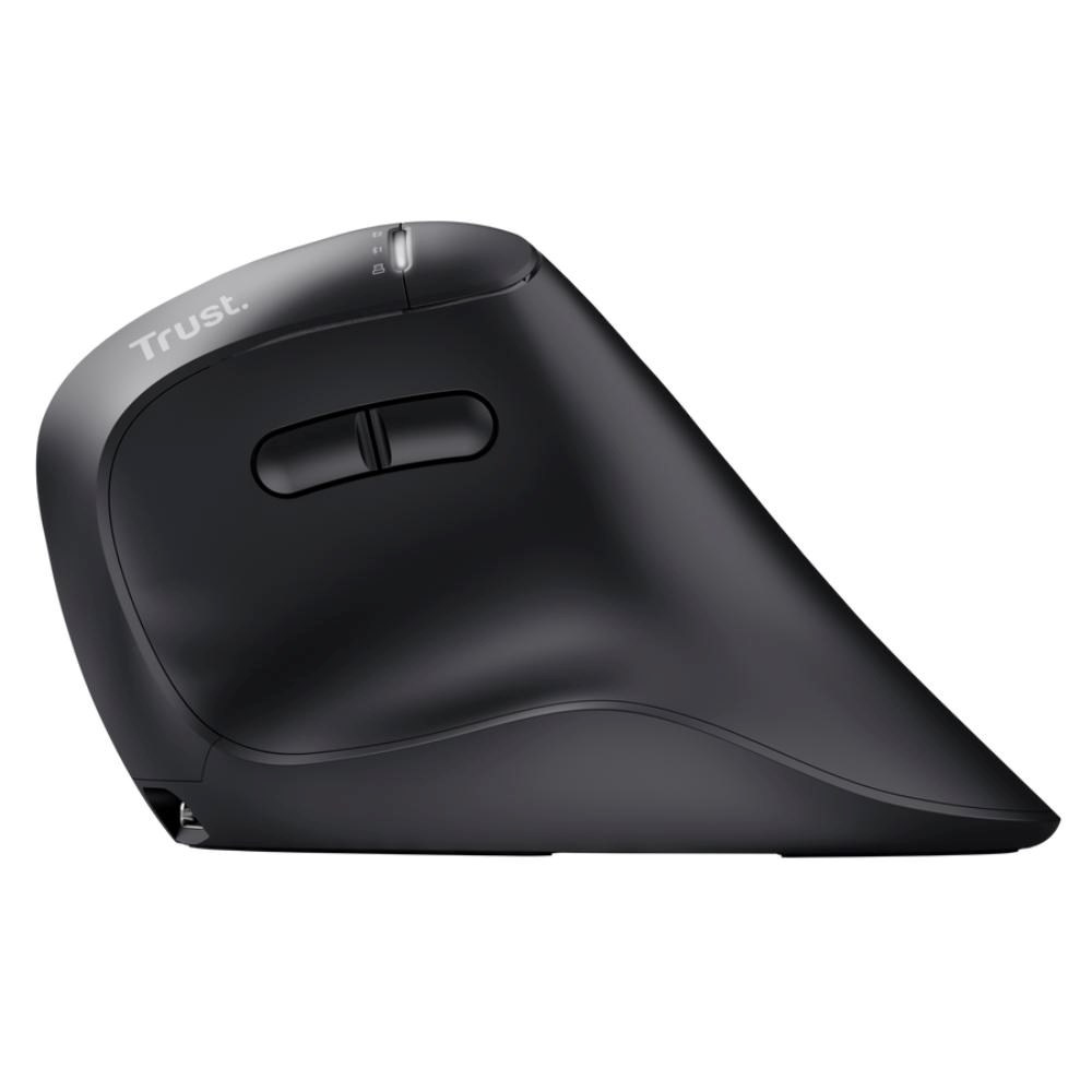 Trust Vyran je ergonomická bezdrátová myš s vertikálním designem (50°), která pomáhá udržet ruku v přirozené poloze a zvyšuje pohodlí při dlouhé práci. Nabízí hyperscroll kolečko pro rychlé rolování a možnost připojení až ke třem zařízením – přes Bluetooth nebo 2,4 GHz bezdrátový přijímač USB-A s přiloženým USB-C adaptérem. Díky dobíjecí baterii s dlouhou výdrží a jednoduchému přepínání zařízení je ideální volbou pro každodenní kancelářskou práci i home office.