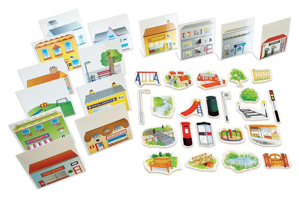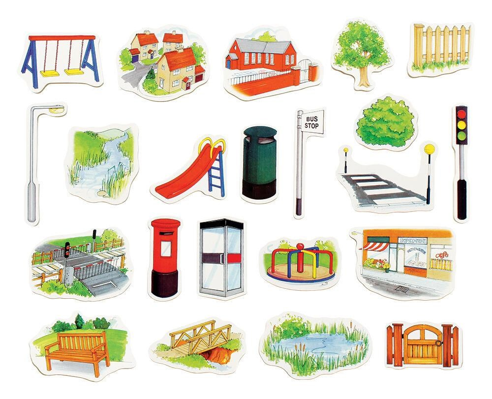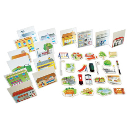 Balíček okolí pro Bee-Bot & Blue-Bot robota. Vybuduj si vlastní město pro Bee-Bota nebo Blue-Bota. Balíček obsahuje podložku, pouliční lampy, stromy, budovy a 22 dřevěných kusů pouličního nábytku.