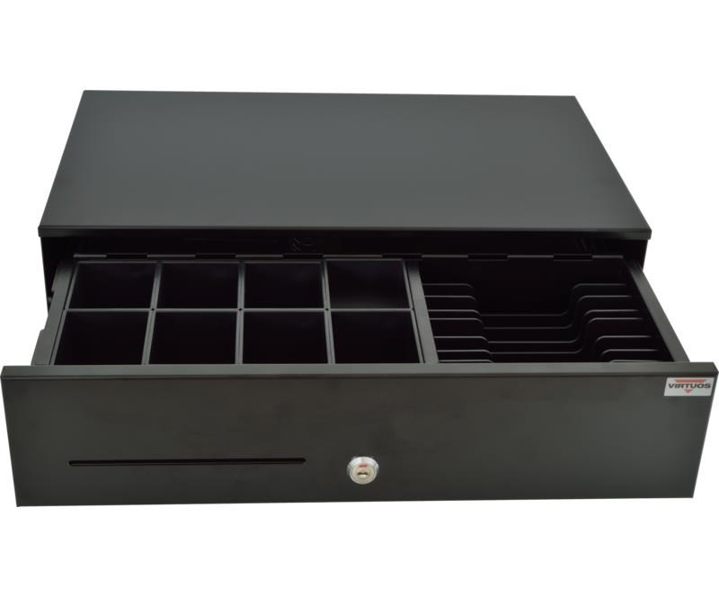 Virtuos pokladní zásuvka SK-500CB s kabelem, kov. pořadač 8/8, 9-24V, černá