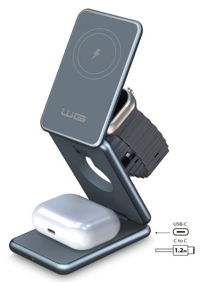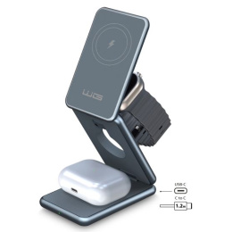 WG - Bezdrátová nabíječka WG39, 3v1, 15W+5W+3W, šedá