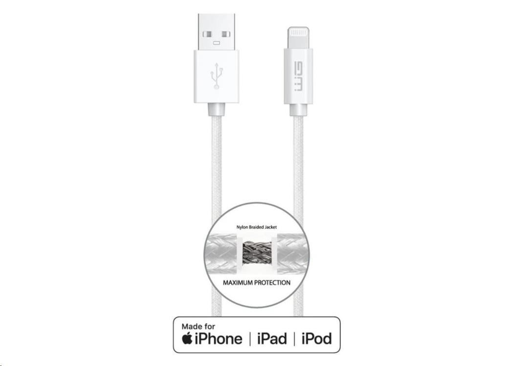 WG - Datový kabel Lightning MFI na USB-A, 1 metr, 2,4A , bílá