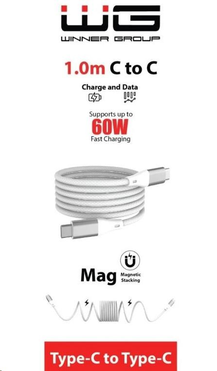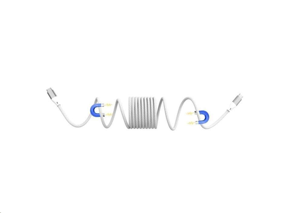 WG - Datový kabel Type-C na Type-C, 1 metr, 3A, 60W, magnetický samonavíjecí, bílá