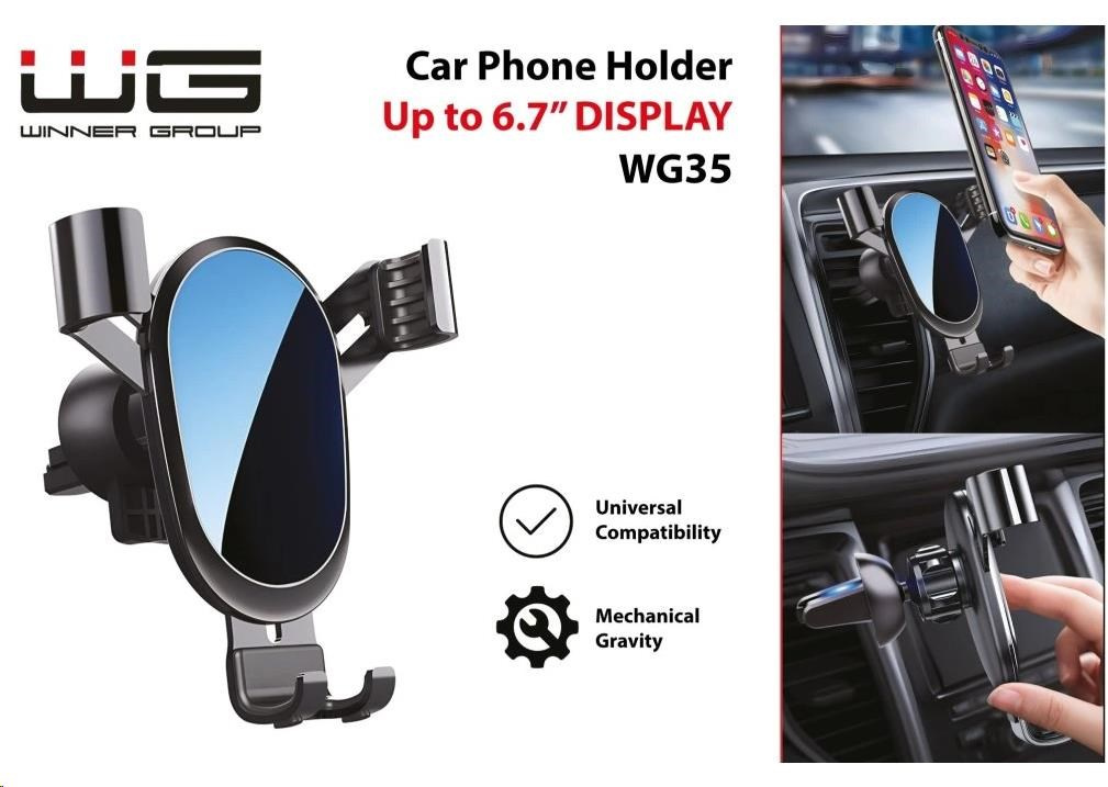 Využívejte svůj telefon jako navigaci nebo telefonujte s handsfree, zatímco máte displej svého zařízení přímo před očima. Držák na telefon WG35 připevníte snadno pomocí svorek na ventilační mřížku vašeho automobilu (pozor, nedá se upevnit do kruhových větracích otvorů). Trojúhelníková konstrukce zaručuje, že telefon drží pevně i na nerovných cestách. Materiál je odolný a zároveň se ve vašem autě bude skvěle vyjímat. Do držáku upevníte jakýkoliv telefon s úhlopříčkou 4 až 6,7 palců.