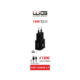 WG - Síťová nabíječka 1x USB-A, Quick Charge 3.0, 5V-9V-12V, + kabel USB-A na Type-C, černá