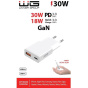 WG - Síťová nabíječka GaN 2x USB, 1x USB-C 30W + 1x USB-A 18W, white, Ultra Slim