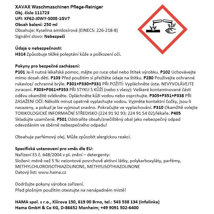 - odstraňuje nečistoty a nepříjemný zápach způsobený zbytky vodního kamene a pracích prostředků
